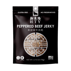 Ingredients: Beef, Water, Sugar, Gluten-Free Soy Sauce (water, soybeans, salt, sugar), Pepper Blend (dehydrated brown sugar, dried garlic, spice, chili pepper), Brown Sugar, Cracked Black Pepper, Vegetable Oil, Celery Powder (cultured celery powder, sea salt), Natural Flavorings (includes paprika).