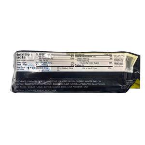 Ingredients: Pineapple Paste (Maltose, Grated Radish, Sugar, Winter Melon, Pineapple, Sweet Potatoes, Butter, Palm Oil, Salt, Natural Pineapple Flavoring, Citric Acid), Wheat Flour, Butter, Sugar, Egg, Milk Powder, Salt.
